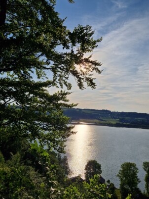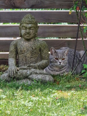 Unten: Rose im Garten, Obertrumer See, unser Samy im Garten